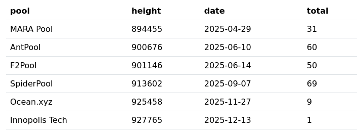 Shows when a pool first mined a transaction spending ephemeral dust.