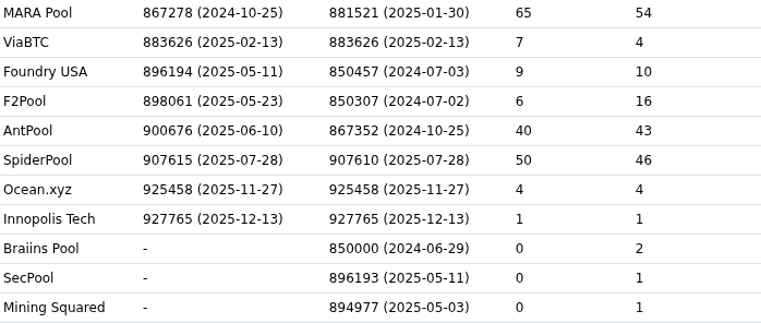 Shows the hashrate percentage of the current top 5 mining pools.